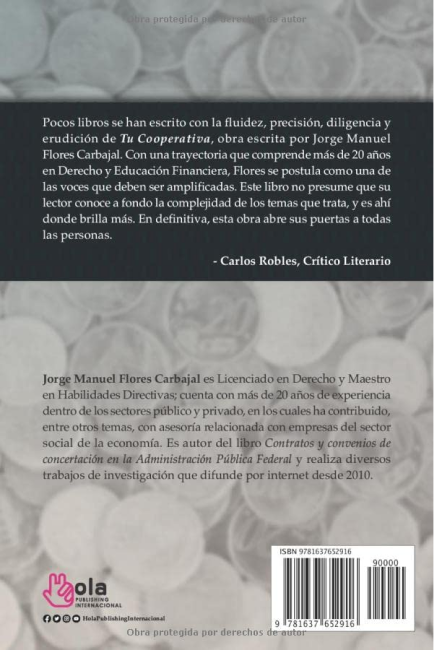 Pocos libros se han escrito con la fluidez, precisión, diligencia y erudición de Tu Cooperativa, obra escrita por Jorge Manuel Flores Carbajal. Este libro no presume que su lector conoce a fondo la complejidad de los temas que trata, y es ahí donde brilla más. En definitiva, esta obra abre sus puertas a todas las personas. – Carlos Robles, crítico literario.